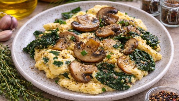 Кремаста јаја, мирисне печурке и свеж спанаћ чине савршен спој укуса. Ово је рецепт који увек успева, а можете га прилагодити свом укусу додавањем омиљеног сира или свежег зачинског биља.