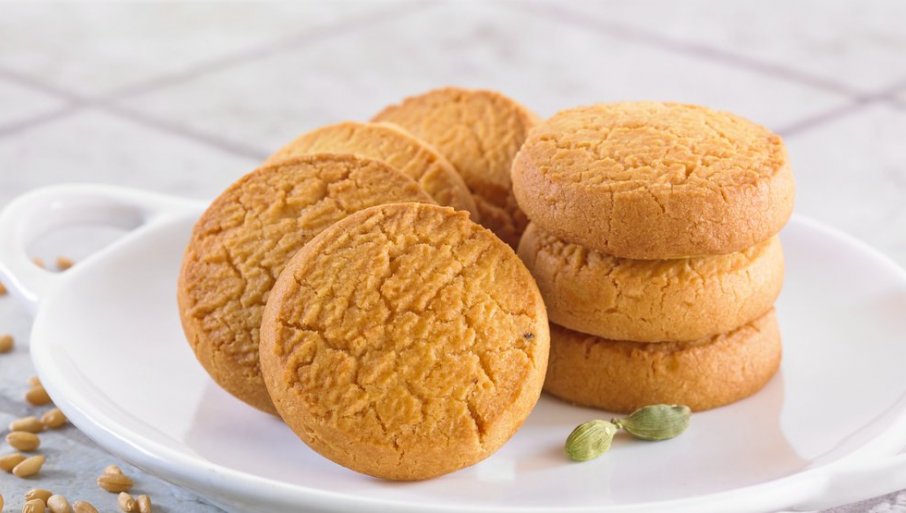 Кашичицом вадите смесу и обликујте у куглице, затим поређајте на плех обложен папиром за печење. Сваку куглицу спљоштите виљушком, да добијете унакрсне шаре.