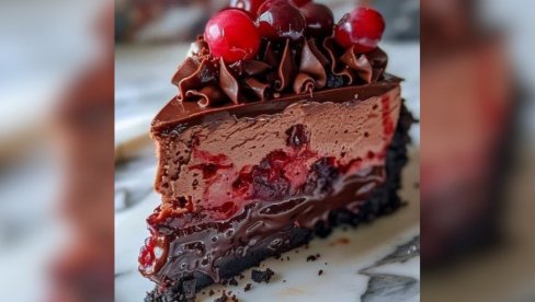 НЕОДОЉИВО КРЕМАСТО САВРШЕНСТВО: Чизкејк од црне чоколаде и вишања, једноставан колач који се не пече