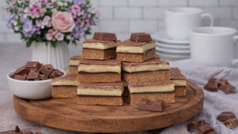 Комбинација хрскаве подлоге од кекса и ораха, богатог чоколадног слоја, нежног белог фила и глатке глазуре даје савршен баланс укуса и текстуре. Идеалне су за славе, прославе или када желите брз, а раскошан колач без печења.
