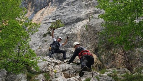 У ОКВИРУ припрема за специјалистичку обуку водича друге категорије за вођење на обезбеђеним пењачким путевима - виа фератама, која се у организацији Планинарског савеза Србије одржава крајем месеца у Горњачкој клисури код Петровца на Млави, планинарски водич и председник ПД "Покрени се" из Крупња Душан Жугић је са колегама из Милића недавно за два и по сата успешно прошао смер виа ферате "Соколов пут" на Црвеним стенама планине Романије у Републици Српској.