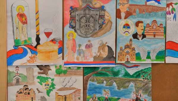 - Поука целог мог рада је да је наша Република кроз векове стицала оно што данас има. Ја сам техником сенчења осликала Републику Српску спајајући грб и заставу, те православни храм у центру Бањалуке, Иву Андрића на ћуприји у Вишеграду и лик Светог Саве - рекла је Исидора Трифковић, која је освојила прво место у конкуренцији ликовних радова.