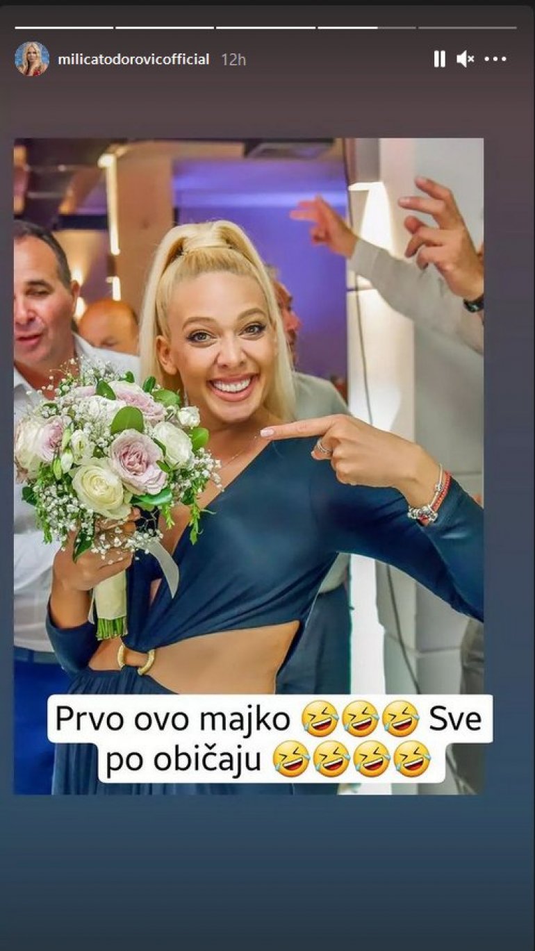 Миличина реакција је уследила на следећем сторију, где је певачица објавила слику на којој се види да је на свадби ухватила бидермајер, што по веровањима значи да је она следећа која се удаје.