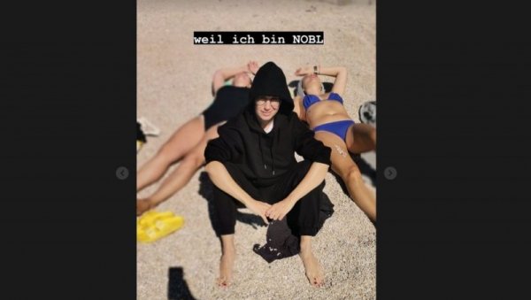 Феномен зван Констракта је позирала на плажи, али не у купаћем костиму као две девојке поред ње, већ у црној тренерци, са капуљачом на глави, уз потпис на немачком језику - "јер сам племенита".