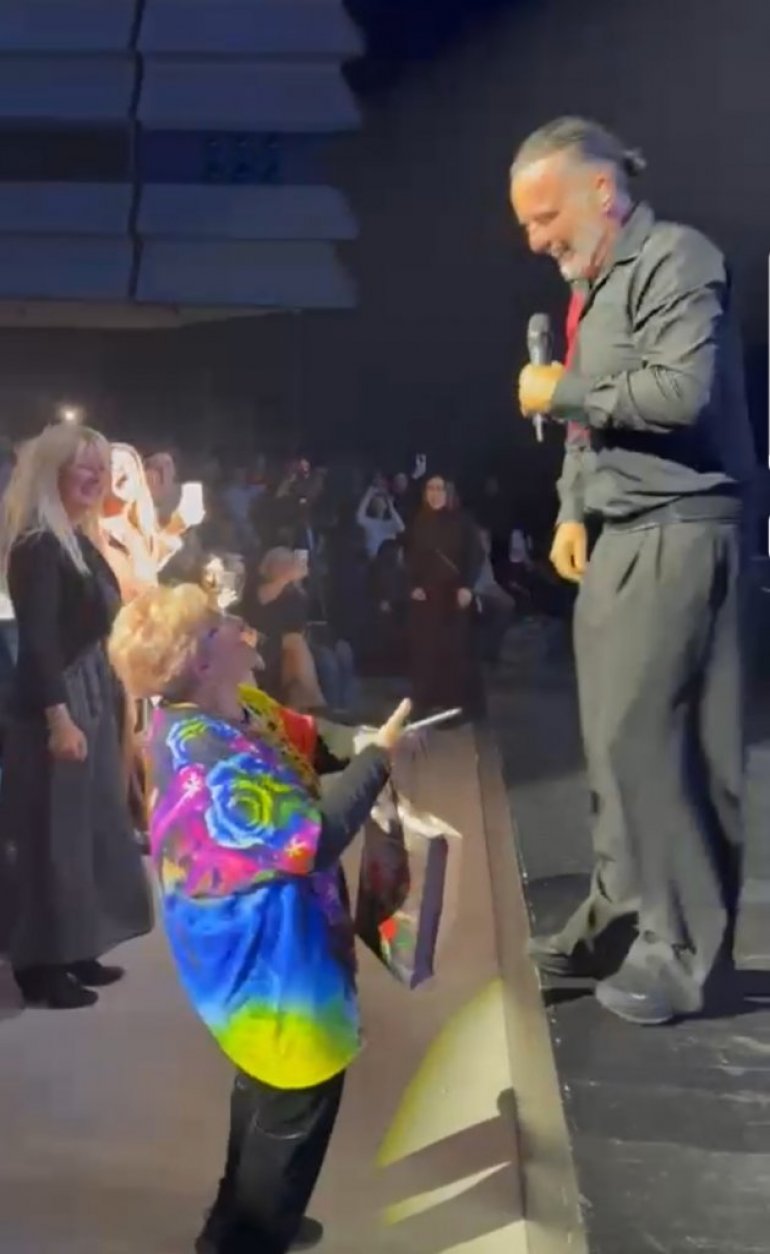 ДИРЉИВ ТРЕНУТАК УСРЕД КОНЦЕРТА: Тони Цетински пољубио обожаватељки руку када му је уручила ручно плетени шал (ФОТО)