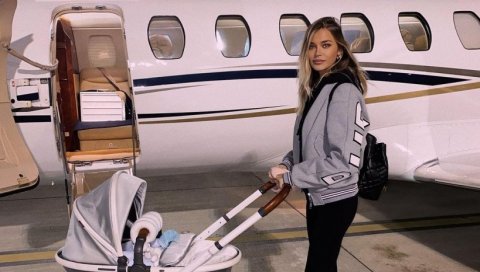 На друштвене мреже поставила је фотографију на којој се спрема да са сином у колицима уђе у приватни авион, написавши да је већ по изласку из породилишта била задовољна својим изгледом.