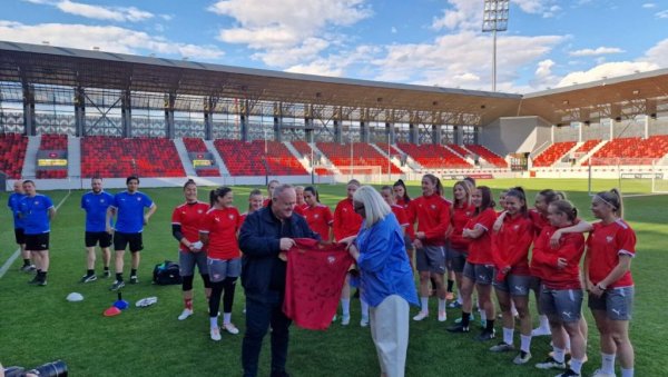 Он им је пожелео добродошлицу у град на Ветерници и много среће, док му је потпредседница ФСС Сандра Сремчевић уручила дрес наше репрезентације са потписима свих фудбалерки.