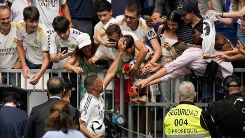 Мбапе (25) је представљен 16. јула на стадиону Сантјаго Бернабеу, пред 80.000 навијача Мадрида, након што је потписао петогодишњи уговор са Реал Мадридом.