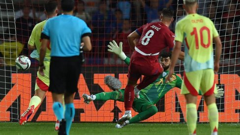 Невероватно је шта је промашио Лука Јовић у утакмици Србије и Шпаније! При резултату 0:0, средином првог дела меча, саиграч Андрија Живковић дао му је савршену лопту, створио му огромну шансу пред голманом Давидом Рајом (28), а онда се српски шпиц обрукао.