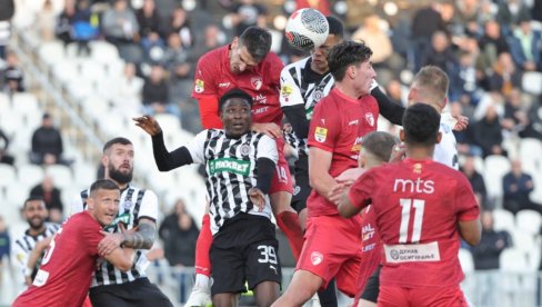 ПАРТИЗАН је прекинуо серију победа у Суперлиги Србије. Црно-бели су 15. колу као домаћини одиграли нерешено са Радничким 1923 - 2:2 и тако зауставили низ од пет везаних првенствених тријумфа.