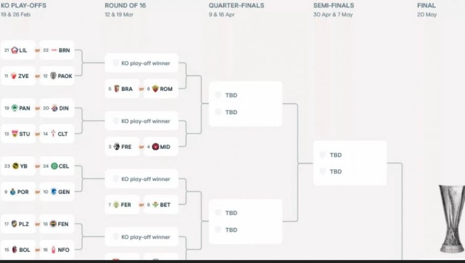 А пре тога, на званичном сајту Лиге Европе, може се видети пројектовани жреб на основу тренутног стања. У одељку за табелу, доступан је и тзв. костур такмичења.