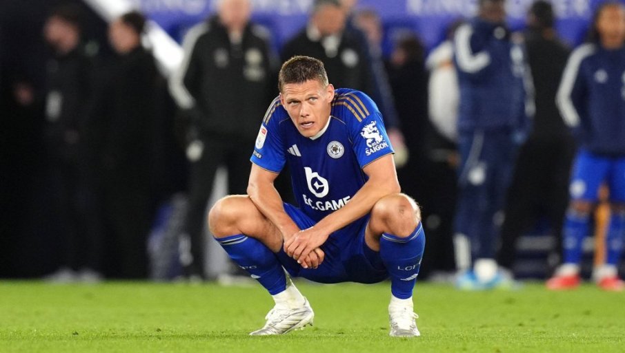 Јаник Вестергард у неверици због испадања Лестер ситија из Чемпионшипа у Лигу 1, што је трећа лига у Енглеској / Foto: Tanjug/Jacob King/PA via AP