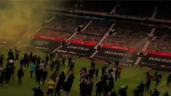 Овај пут отишли су корак даље и улетели на стадион где су палили димне бомбе и бакље. Скај Спортс очекује окупљање 10.000 навијача на Олд Трафорду у знак протеста власницима.