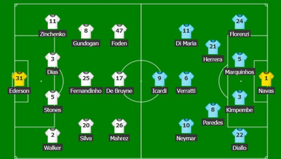 45. МИНУТ - Идеално полувреме Ситија. ПСЖ је имао само шансу од 15 до 22. минута. Манчестер је могао у надокнади да дуплира предност. Навас је два пута спасао ПСЖ.