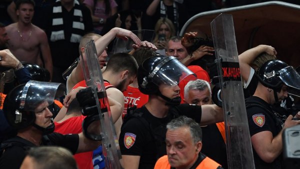 ПАРТИЗАН – ЗВЕЗДА Након дивљања "Гробара" и прекида утакмице,кошаркаши Звезде изашли на паркет, црно-бели нису
