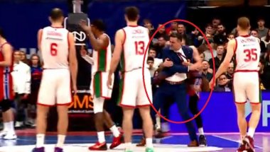Улетео је због тога тренер "армејаца", Андреас Пистолис на паркет, хтео да се обрачуна са судијама, а срећом да се ту нашао српски ас - који је свог стратега загрлио и "изнео" са терена...