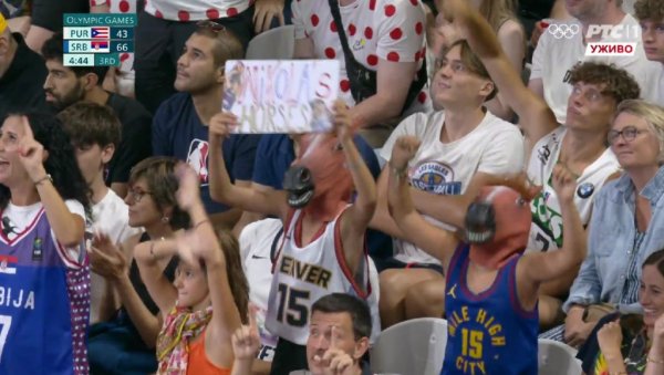 НИКОЛА Јокић имао је посебну подршку на трибинама у Лилу за време утакмице Порторико - Србија.