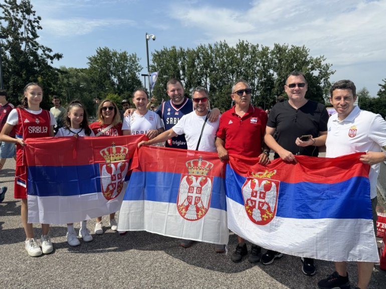 Тако је било и данас, где су се, радосни после две велике кошаркашке победе, на сваком кораку виђали и српски навијачи.