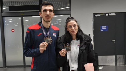 ЗАДОВОЉНИ и насмејани. Чланови српске атлетске делегације предвођени освајачима два бронзана одличја Иваном Вулетом у скоку удаљ и Елзаном Бибићем на 3.000 метара, вратили су се тријумфално у Београд мање, од 24 сата пошто су нашој "краљици спортова", на прекјуче завршеном дворанском ЕП у Истанбулу подарили медаље.