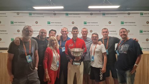 Како би овако лепа прича могла да се заврши другачије, него "породичном" фотографијом? По старом добром обичају и већ устаљеној традицији, после конференције за медије, Новак је сишао са бине са "Купом мускетара" и сликао се окружен српским извештачима. Шта би друго стране колеге могле да ураде, него да нас замоле да је после проследе у свет.