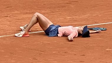 Након тријумфа у исцрпљујућем мечу који је потрајао 3 сата и 8 минута, пружила се по шљаци колико је дуга, пао је затим загрљај две играчице, кренуле су сузе радоснице, стигла је до клупе, а онда се нагло вратила на средину терена у експлозији среће и весеља.