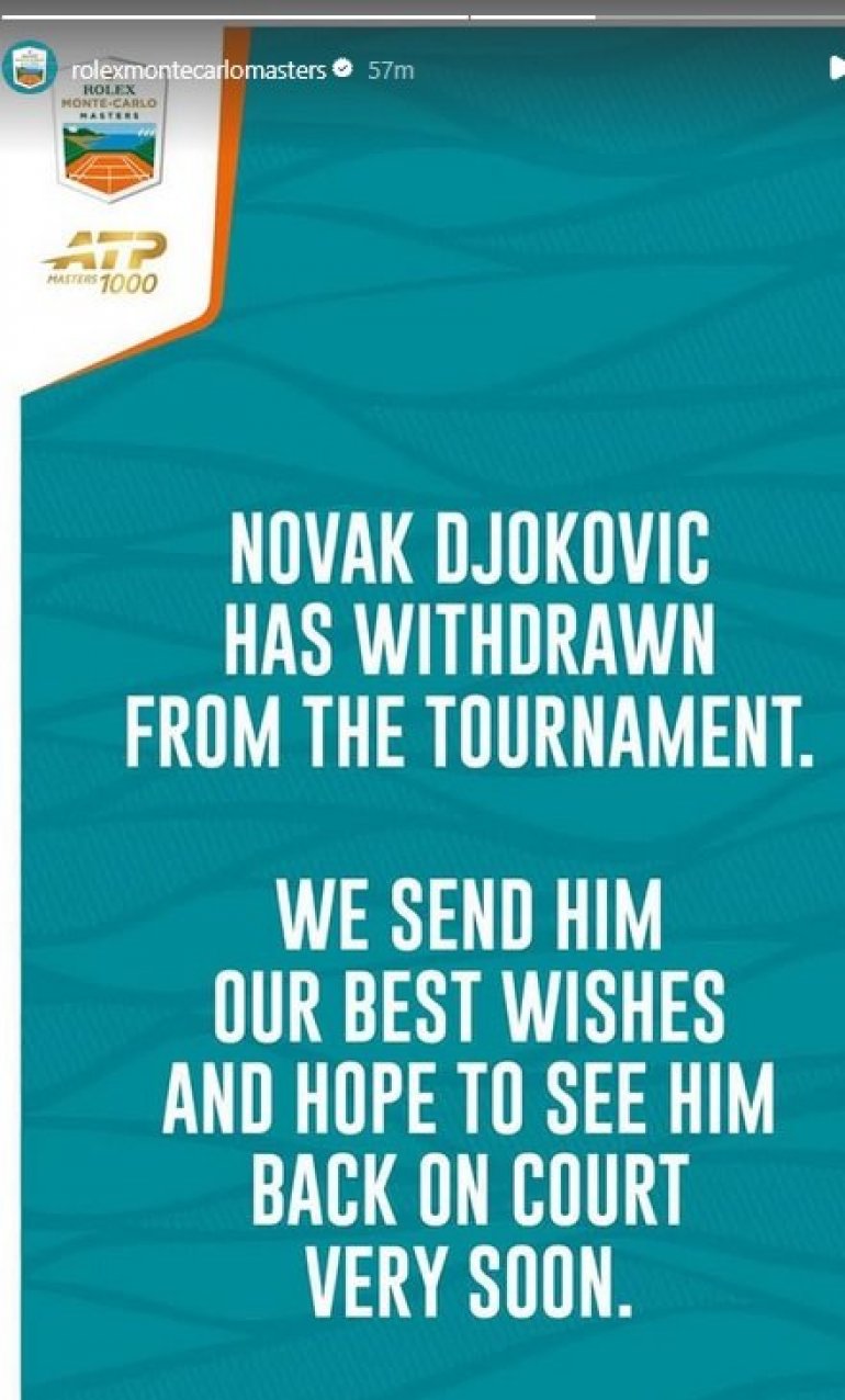 Наиме, Србин је донео одлуку да одустане од учешћа на мастерсу у Монте Карлу, саопштили су организатори турнира.