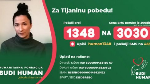 Како је породица досадашње лечење финансирала сама и исцрпела сва средства, сада се узда у хумане људе. Тијани можете помоћи слањем СМС броја 1348 на 3030.