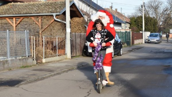 ДЕДА МРАЗ НЕ ЖИВИ САМО НА СЕВЕРНОМ ПОЛУ: Из Мокрина, на тротинету, дошао у Кикинду да би обрадовао једну посебну девојчицу (ФОТО/ВИДЕО)