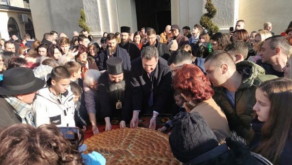 УЗ благослов епископа шабачког Јеротеја, градоначелник града на Сави, Др Александар Пајић је, са суграђанима, учествовао у традиционалном ломљењу чеснице, овог пута тешке 50 килограма, од око 600 парчади.
