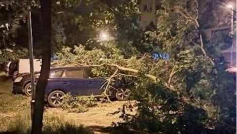 УСЛЕД невремена које је погодило Нови Сад, на Булевару Јаше Томића је преко паркираних аутомобила пало дрво.