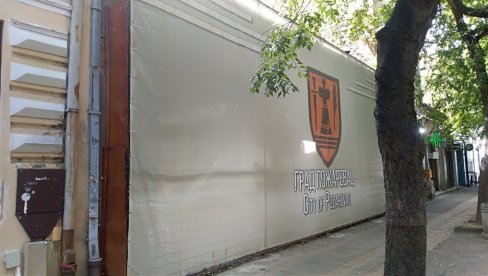 Реч је о некадашњој продавници „Беко“, која је била предмет поступка реституције, а сада је у току спор између власника, физичких лица. Пошто не припада граду Пожаревцу, локална самоуправа нема надлежност за извођење поправки, па је цео објекат заклонила платном.