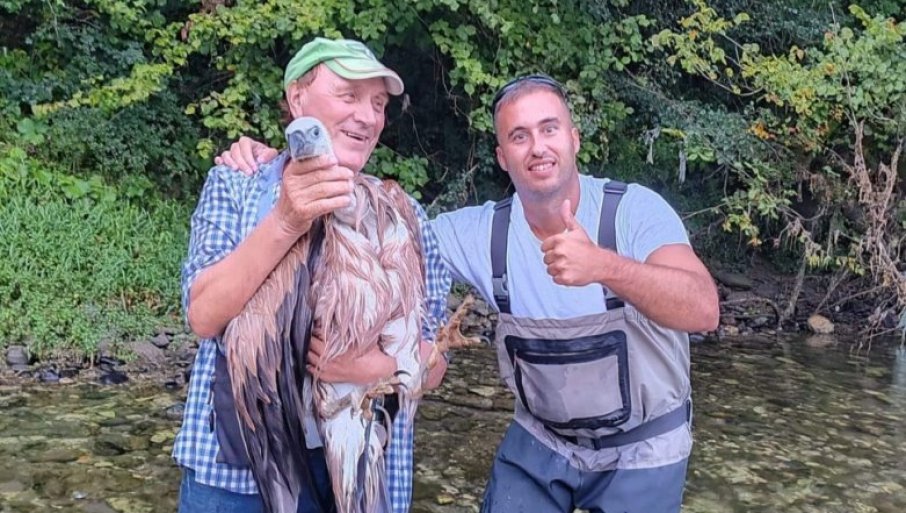 СПАСИЛИ ЗАНЕМОЋАЛОГ БЕЛОГЛАВОГ СУПА: Племенита мисија риболоваца Ивана и Горана на обали Дрине