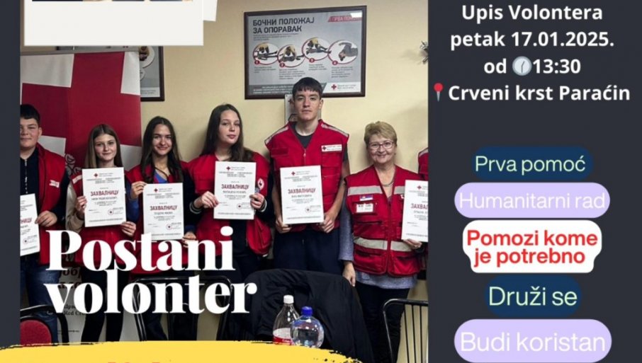 МЛАДИ заинтересовани за добровољну волонтерску активност у Црвеном крсту у Параћину могу да се пријаве 17. јануара у просторијама ове хуманитарне организације од 13.30 сати.