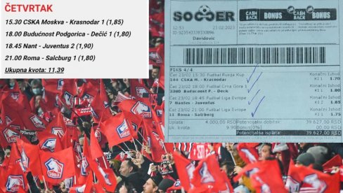 Од синоћ нам је стигло доста тикета наших задовољних читалаца који су преписали јучерашње сјајне предлоге који су донели још сјајнију квоту 11,39 и које можете погледати ОВДЕ.