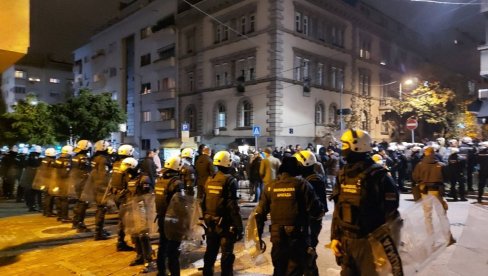 Иза непријављеног протеста стоји НВО "Иницијатива младих за људска права", а међу окупљенима је уочен Арис Мовсесијен из Нове странке, као и Добрица Веселиновић - Не давимо Београд.