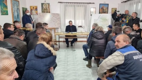 ПРЕДСЕДНИК Србије Александар Вучић у Горњим Недељицама разговара са забринутим грађанима.
