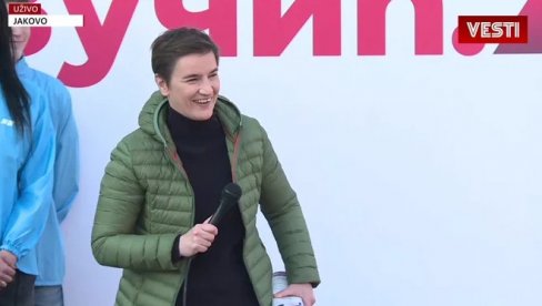 АНА Брнабић се захвалила великом броју присутних грађана на скупу СНС-а у Јакову, а затим и пренела извињење председника Александра Вучића што данас није присутан.