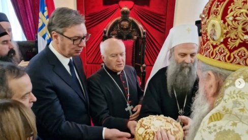 ПРЕДСЕДНИК Александар Вучић честитао је патријарху Порфирију крсну славу Светог Јована.
