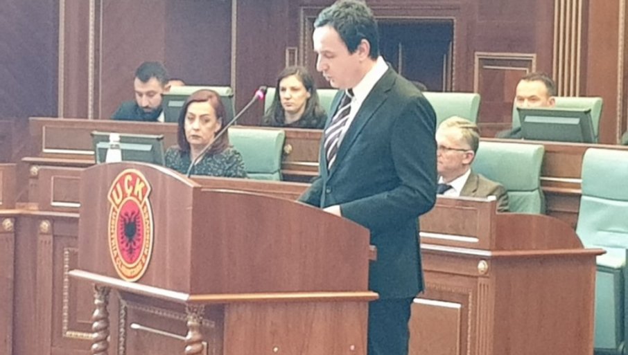 Седници присуствују Вјоса Османи, Аљбин Курти и председник Албаније Бајрам Бегај, а на скупштинској гооворници је истакнут амблем терористичке "УЧК".