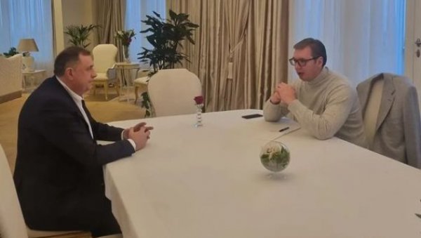 - Увек пријатељски разговор са председником Српске Милорадом Додиком. Договарамо се око многих пројеката и информисао сам председника Додика о Бриселском дијалогу. Такође, председник Додик је мене упознао са ситуацијом у Републици Српској и БиХ. Нека живе Србија и Српска! - истакао је Вучић у објави на Инстаграму.