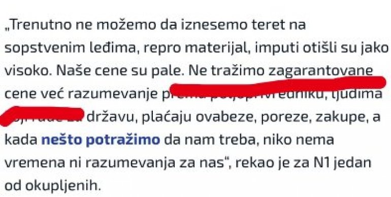 Наиме, један од учесника протеста рекао је за Н1 да пољопривредници "не траже загарантоване цене већ разумевање према пољопривреднику".