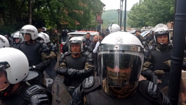 ВЕЛИКИ број припадника КФОР-а са опремом за разбијање демонстрација распоређен је јутрос у близини општинских зграда у Звечану, Лепосавићу и Зубином Потоку. Иза њих налазе се јаке снаге тзв. косовске полиције које не дозвољавају окупљеним Србима да приђу зградама.