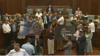 У СКУПШТИНИ лажне државе Косово поново је дошло до опште туче због које је морало да реагује и обезбеђење. Том приликом је један од присутних посланика гађао премијера привремених институција Аљбина Куртија флашицом воде у главу.