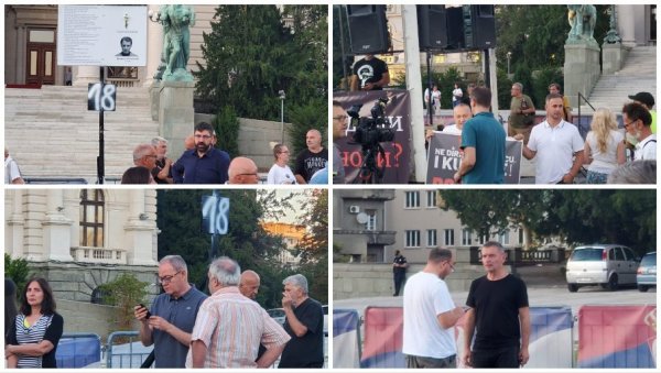 На лицу места налазе се представници дела опозиције која организује политичке протесте током претходних 18 недеље: Александар Јовановић звани Ћута, Срђан Миливојевић и Зоран Лутовац.