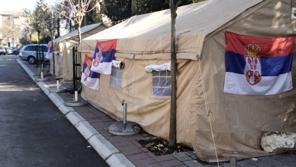 САДА ПОСТАВИЛИ И ШАТОРЕ: Више од пет месеци запослени у општини Звечан протестују на улици