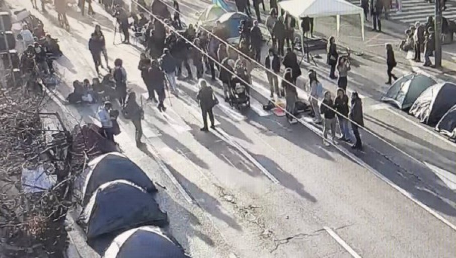 Они су поставили и шаторе у којима планирају да остану током читаве ноћи.