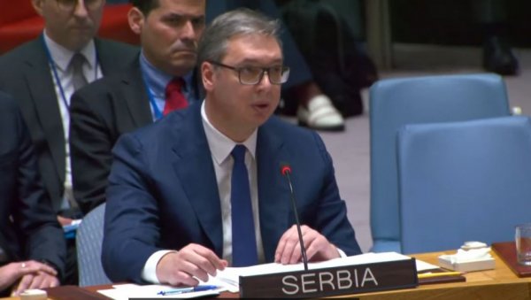 ВАНРЕДНА седница Савета безбедности УН о стању на Косову и Метохији, заказана на захтев Србије, почела је у 21 час, а председник Србије Александар Вучић рекао је у другом делу говора да Србија није марионета ни САД ни Русије.