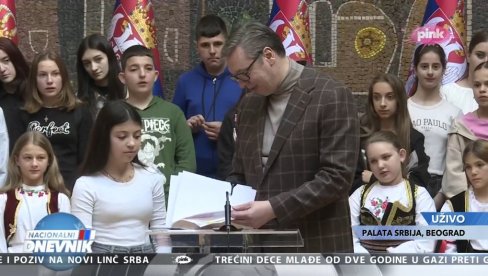 ПРЕДСЕДНИК Републике Србије Александар Вучић примио је у Палати Србија ученике основних школа са Косова и Метохије.