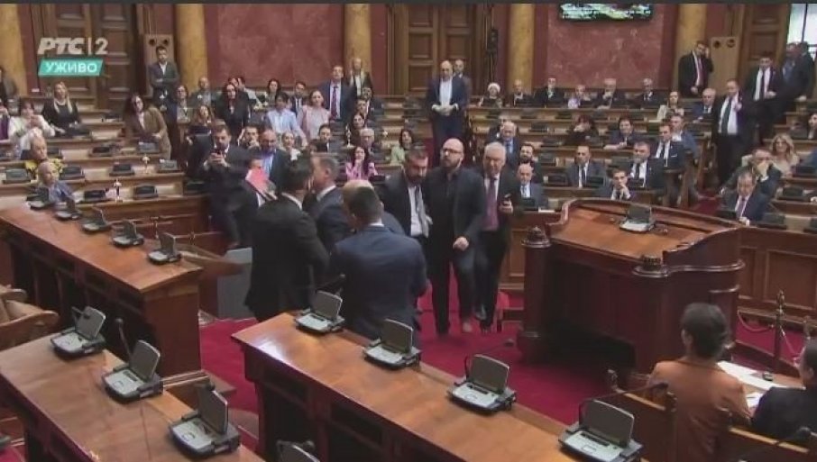 СКАНДАЛ У СКУПШТИНИ: Србија против насиља се физички залетела на Раденовића, Алексић ударио припадника обезбеђења (ВИДЕО)