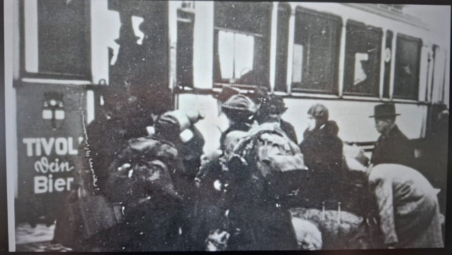 - У граду се налазио и велики логор за заробљене црвеноармејце који су ту доведени на принудни рад у руднику и фабрикама уља за Хитлерову ратну машину. Било их је укупно око 30.000 заробљеника, а убијено је или умрло од исцрпљености више од хиљаду људи. На слици је сцена одвођења Јевреја у концлогор из Моерса у децембру 1941. године. Изгледа да госпођу прогањају неке мрачне слике. И она ће некоме да прича о геноциду, рекао је Весић.